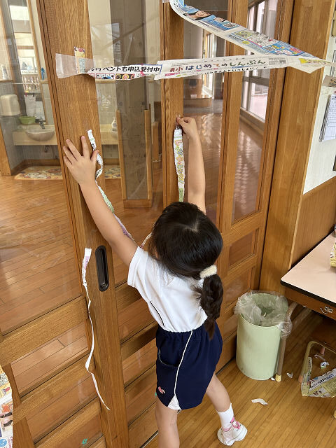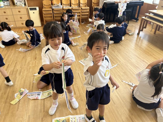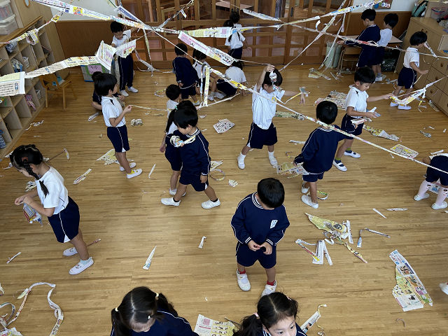 新聞紙をちぎると、「いい音がする!」「長くなったよ!」と、とても可愛らしい表情で見せてくれる姿が可愛らしかったです。