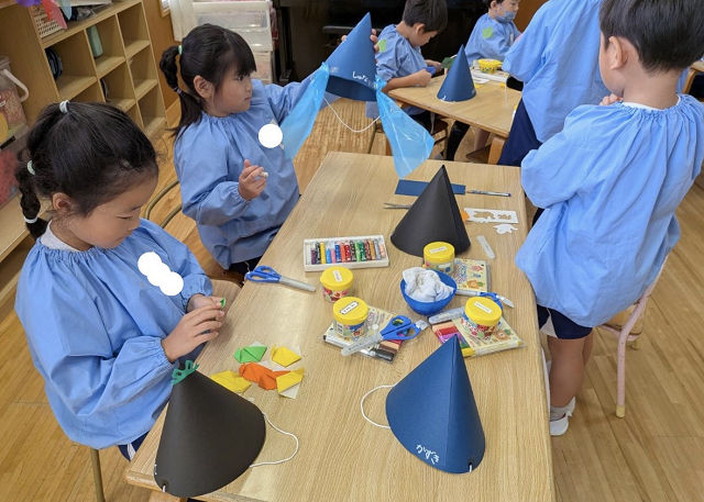 朝から帽子作りやキャンドルカップの制作、ゲーム遊びをして楽しく過ごしました。