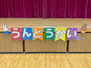 ホールではレクリエーションとしてデカパンリレーと猛獣狩りをしました!学年全員でゲーム遊びをすることはなかなかないので、子どもたちもとても楽しそうでした。