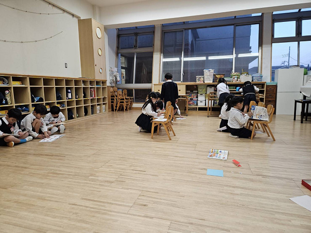 おやつを食べた後はクラスチャンピオン大会に向けて縄跳びの練習を頑張っています。 少しでも継続して行ってることやクラスの枠を超えていい刺激をしあいながら飛べる回数や跳べる種類が増えています。そのあとは、元気いっぱい戸外遊びを楽しんでいます。 保育室に戻ってからはお絵描きや折り紙、紙で制作したり絵本を読んだりして楽しく過ごしています。 寒くなってきたので、お部屋での過ごし方を充実していきたいと思います。