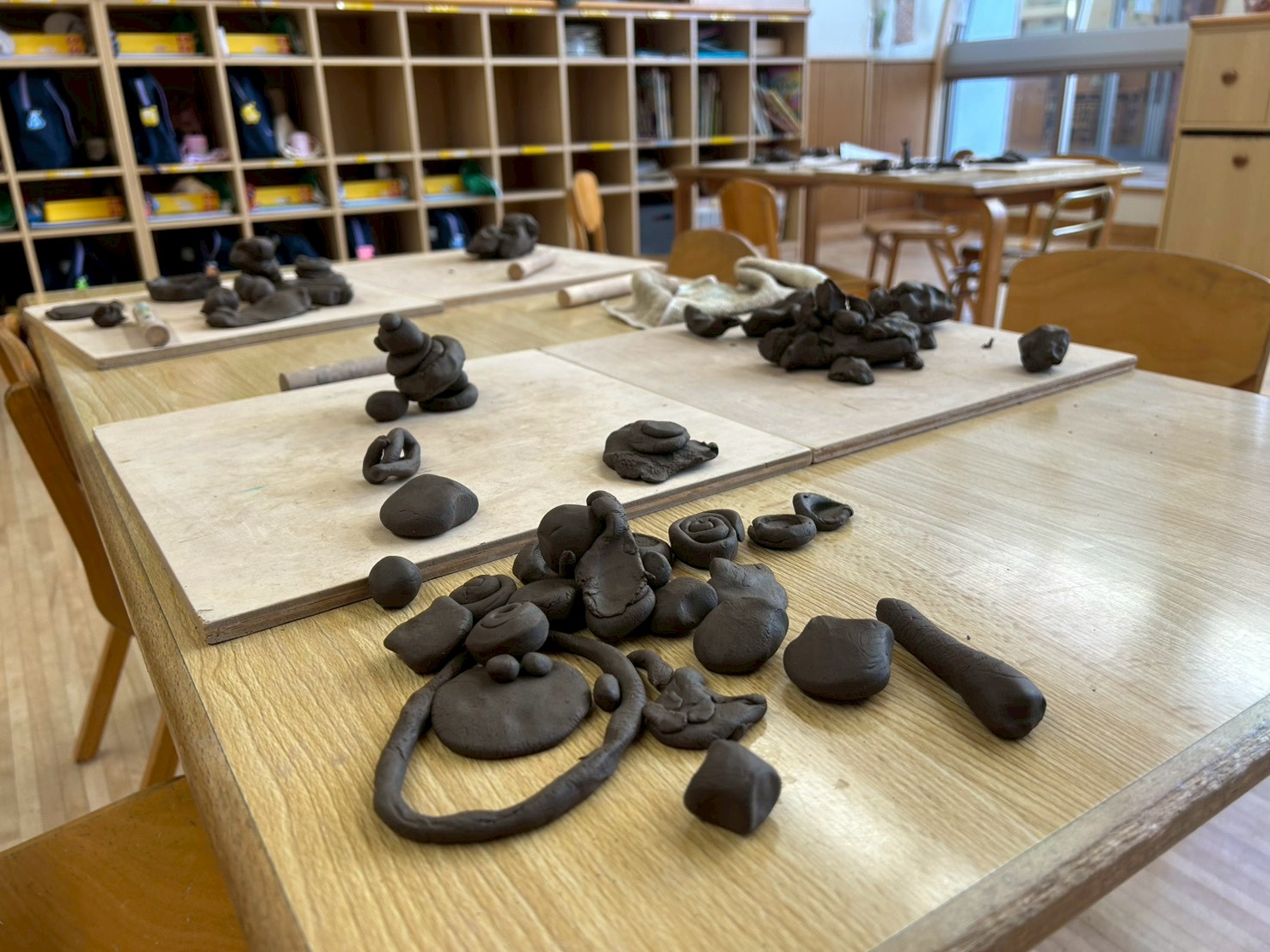 いつもと違う環境に緊張しつつも、普段は触ることの出来ない土粘土に興味津々の子ども達。実際に触れてみると大はしゃぎな様子が見られました。