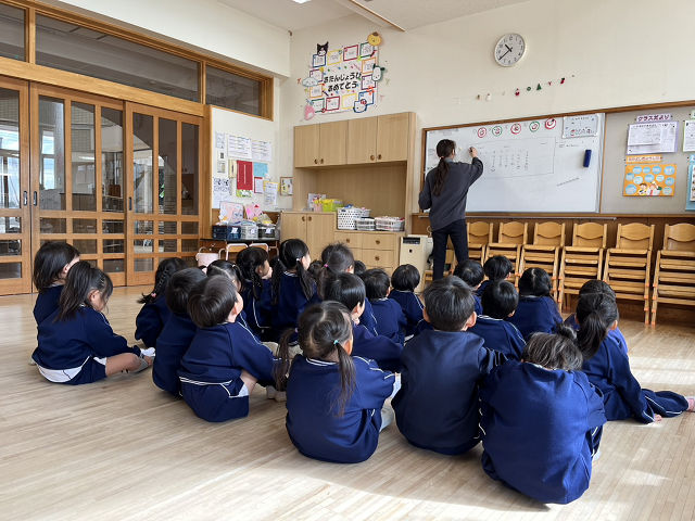その後お部屋では2学期の振り返りをし、2学期楽しかったことを1人ずつみんなの前で発表し合いました。