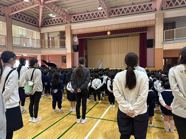 始業式では園長先生のお話を聞いた後に園歌をうたいました。3学期への期待が高まっています。