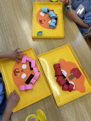 いま、年中さんでは憧れの年長さんのようにかっこよくなりたい! と、ピアニカや縄跳びにも積極的に取り組んでいます。 ミッキーマウスマーチの練習ではリズムや指使いを意識したり 縄跳びでは諦めずに何度も跳んだり難しい跳び方に挑戦する姿が たくさん見られていますよ! また、制作ではのりを付けたり線の上を上手にはさみで切ることなど 一つひとつ丁寧に進めることを意識しながら取り組んでいます 楽しみながら年長さんに向けてみんなで頑張っていきたいと思います