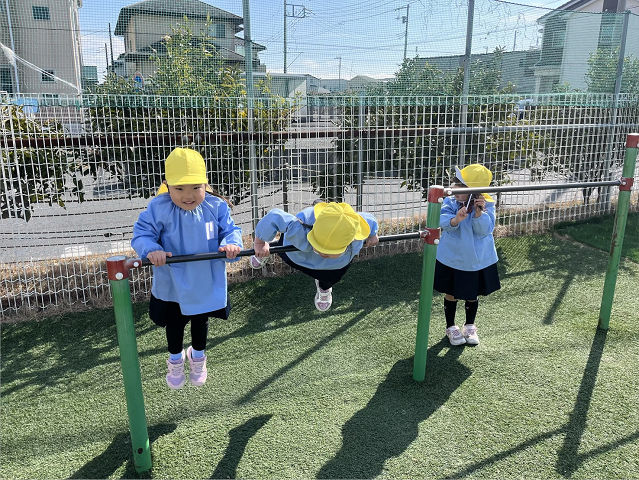 いま、いちご組のお友達は縄跳びと鉄棒に意欲を高めて取り組んでくれています。