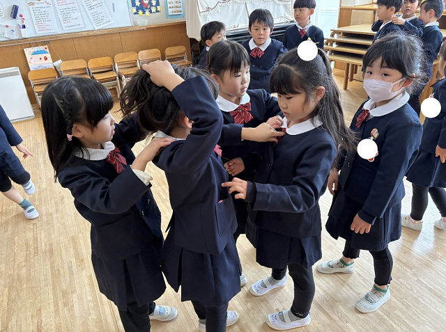 卒園式練習の前は身だしなみを自分たちで整えています。