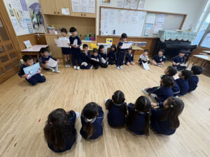 帰りの活動ではじゃんけんができるようになったり、自分たちでバスの順番に並ぶことができたりと、素敵な姿がたくさん見られています♪