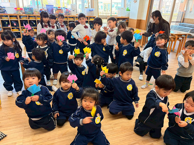 みかん組・年少・年中組のどのクラスの子どもたちも、ニコニコと笑顔いっぱいに話を聞いてくれていて