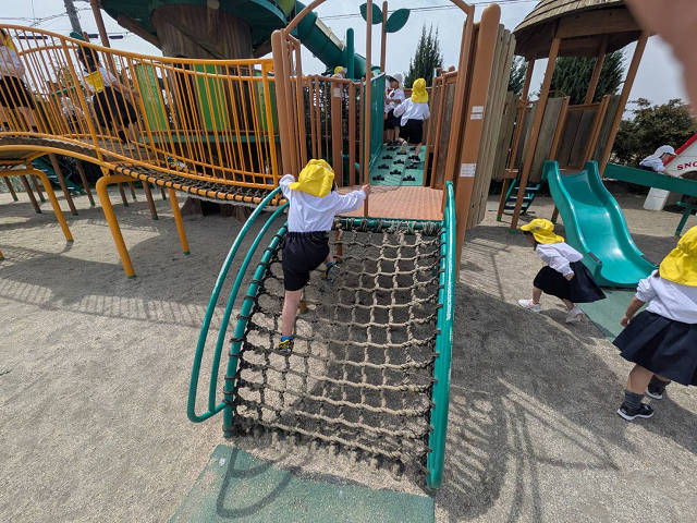 今日は年中になって最初の戸外あそび。 まず初めに遊具の使い方の再確認!みんな真剣にお話を聞いていました。 戸外で、年少の時のお友だちに会うとお互い名前を呼び合ったりとかわいらしい姿が見られました! 戸外で遊んでリフレッシュ。その後、給食もモリモリ食べることが出来ました。少しずつ笑顔も見られているので安心してくださいね。